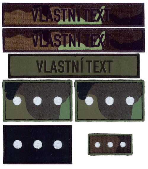 • Pro usnadnění objednávání nabízíme typickou vojenskou sadu jmenovek včetně potřebného hodnostního označení na polní uniformu a svetr