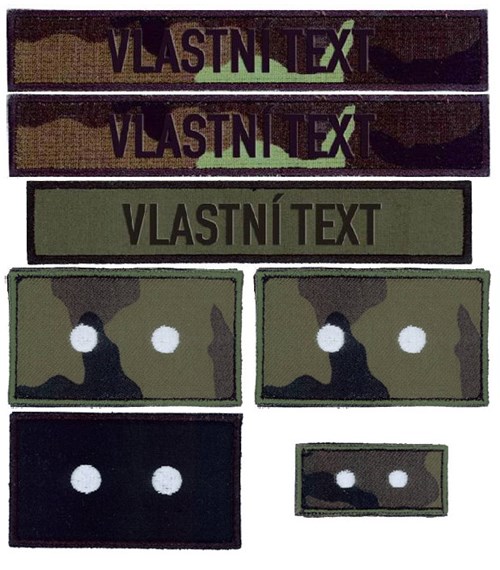 • Pro usnadnění objednávání nabízíme typickou vojenskou sadu jmenovek včetně potřebného hodnostního označení na polní uniformu a svetr
