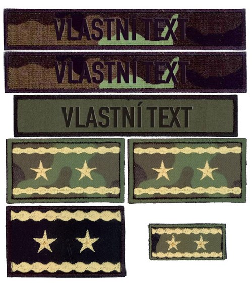 • Pro usnadnění objednávání nabízíme typickou vojenskou sadu jmenovek včetně potřebného hodnostního označení na polní uniformu a svetr