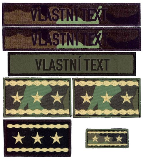 • Pro usnadnění objednávání nabízíme typickou vojenskou sadu jmenovek včetně potřebného hodnostního označení na polní uniformu a svetr