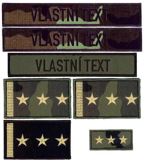 • Pro usnadnění objednávání nabízíme typickou vojenskou sadu jmenovek včetně potřebného hodnostního označení na polní uniformu a svetr