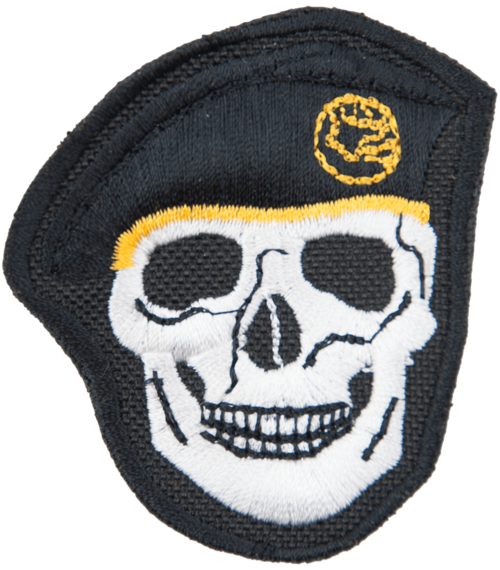 • Precizně vyšitá lebka s černým baretem.