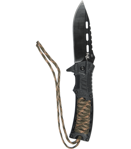 - rukojeť omotaná paracordem (barva černá nebo kamufláž), který je použitelný i pro taktické účely samostatně. Aby se padáková šňůra nerozplétala, je konec omotání rukojeti fixován trochou lepidla, tento spoj lze v případě nouzového použití roztrhnout a šňůru použít samostatně.