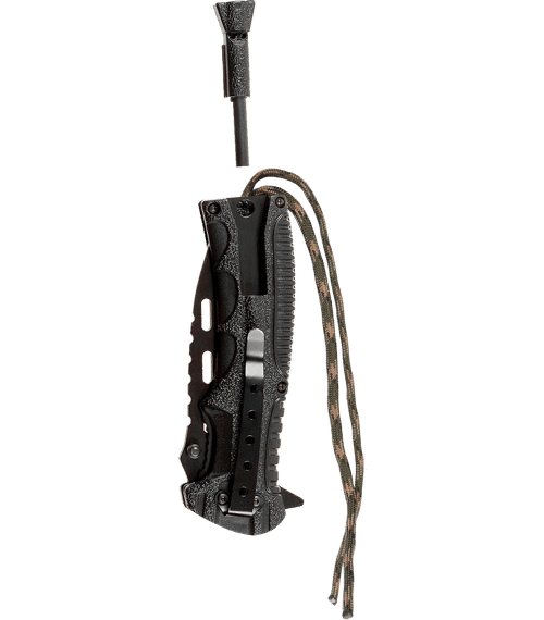 Zavírací nůž s píšťalkou a křesadlem.