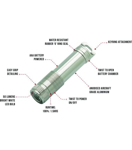 Kolik světla dá jedna malá AAA baterie? 50 lumenů po dobu cca 1,5 hodiny.