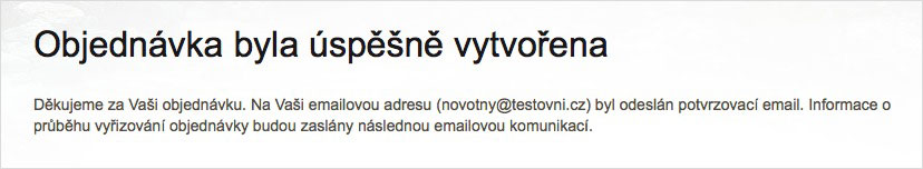 Po Závazném objednání Vám bude zobrazeno poděkování za Vaši objednávku a na Vaši emailovou adresu obdržíte potvrzovací email. Tím je objednávací proces ukončen. Kopie objednávky, která je závazná, Vám bude doručena elektronickou poštou na Vaši emailovou adresu.