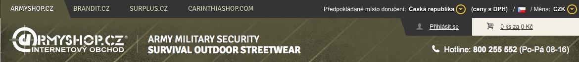 Pokud jste byl v minulosti zaregistrován v některém z našich dřívějších eshopů zveřejněných na doménách: ARMYSHOP.CZ, SURPLUS.CZ, BRANDIT.CZ a nebo CARINTHIASHOP.COM nepoužívejte jako přihlašovací jméno svůj původní login, ale emailovou adresu, kterou jste použil jako komunikační mail v registraci. Heslo použijte stejné, jako doposud.