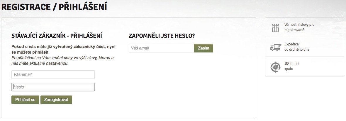 Pokud jste již registrovaným zákazníkem, pak se můžete přihlásit pomocí emailové adresy zadané v registraci a zvoleného hesla.