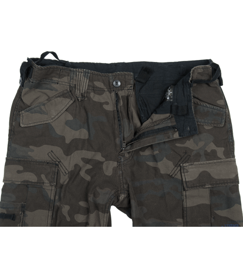 Industry Vintage firmy Brandit nabízejí všechny výhody dlouhých kalhot v pohodlné letní délce. Na modelu vycházejícím z již klasických armádních kalhot M65 zůstaly zachovány všechny nepostradatelné kapsy (vpředu, vzadu a na stehnech). Brandit je však mírně aktualizoval. Postranní kapsy v pase jsou průhmatové, a tudíž lépe přístupné, klopa s patentem zůstala nicméně zachována jako artefakt. Stehenní kapsy mají zkosené dolní rohy a jsou měchovité v celém okraji. Výrobce navíc kalhoty ozvláštnil množstvím působivých detailů jako zdvojená poutka pro opasek, pošití na klopách zadních kapes, kovové průvleky s tkanicí vzadu v pasové linii a doplňkový úložný prostor na pravé stehenní kapse. Vše podtrhuje opraný vzhled a dostupnost v několika barevných variantách včetně nezvyklé kostkované. - potisk na levé boční kapse - nakládaný materiál v oblasti kolen - poklopec na zip - stahování konce nohavic - tajná kapsička zevnitř v pasové linii
