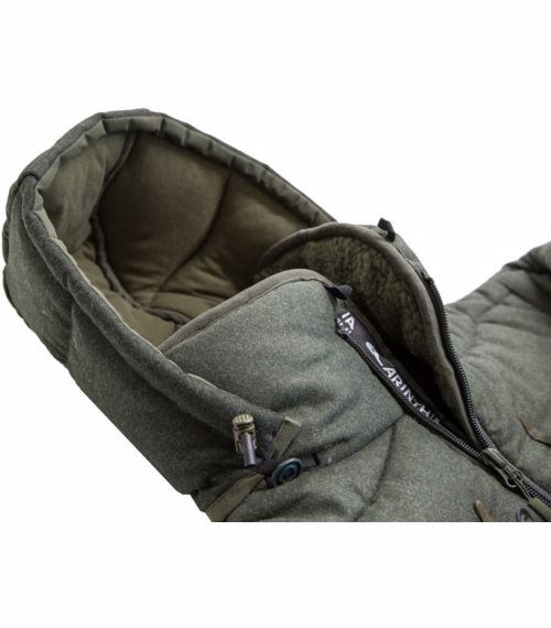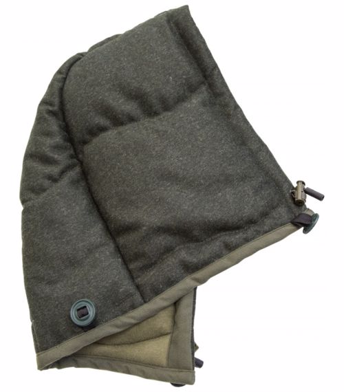 Zateplená kapuce k vaku na posed zhotovená z lodenu (75 % vlna, 20 % polyamid, 5 % polyester).