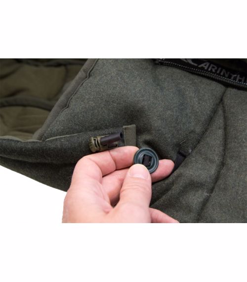 K bundě / vaku se připevňuje pomocí tří velkých knoflíků, které se provléknou pružnými očky.