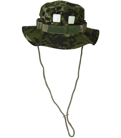 Po obvodu střechy klobouku je našit popruh, za který je možné připevňovat maskovací prostředky. V přední i zadní části je na tomto popruhu našit stuhový uzávěr (smyčková část) pro připevnění nášivek nebo jiných identifikačních znaků.