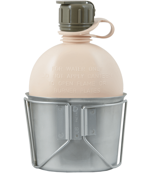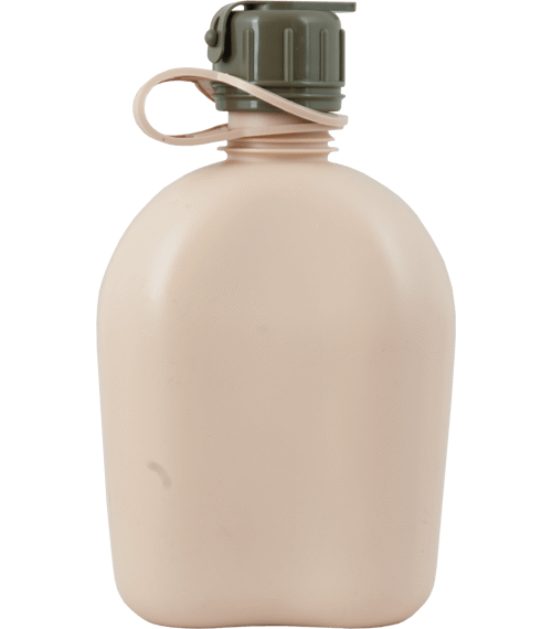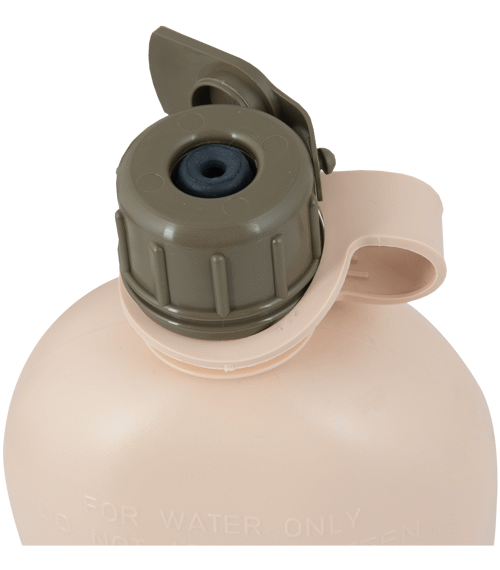 - šroubovací víčko (kompatibilní s typově stejnými láhvemi dalších výrobců - STURM, MFH) s úpravou pro pití hadičkou (plynové masky)