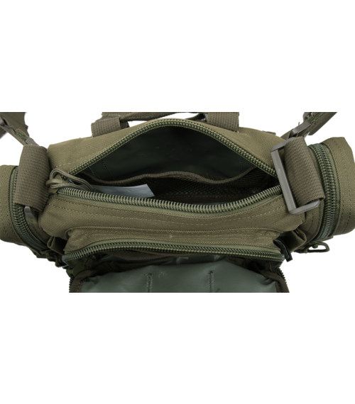 - na bocích ledvinky 2 menší kapsy zapínané kovovým zipem. Jsou vhodné např. na menší mobil, vysílačku nebo nůž (rozměry kapes jsou cca: výška 15 cm × šířka 7 cm × hloubka 5 cm)