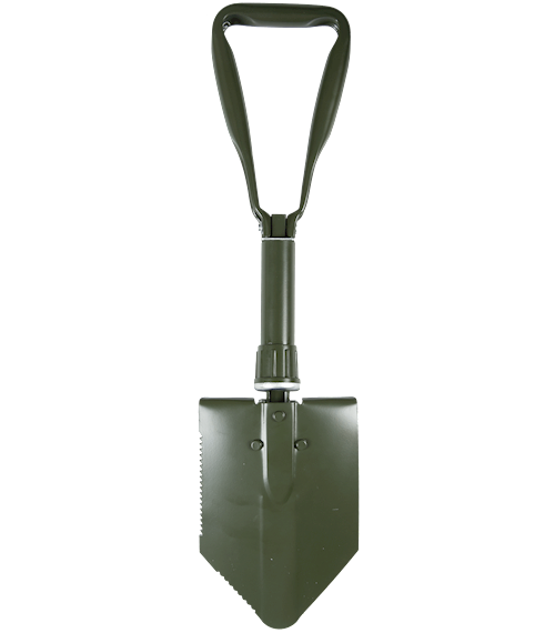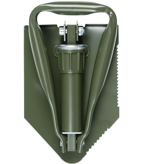 Snadným rozložením ve třech ohybech vznikne účinný nástroj, který lze alternativně použít jako lopatku, rýč nebo nouzovou pilku
