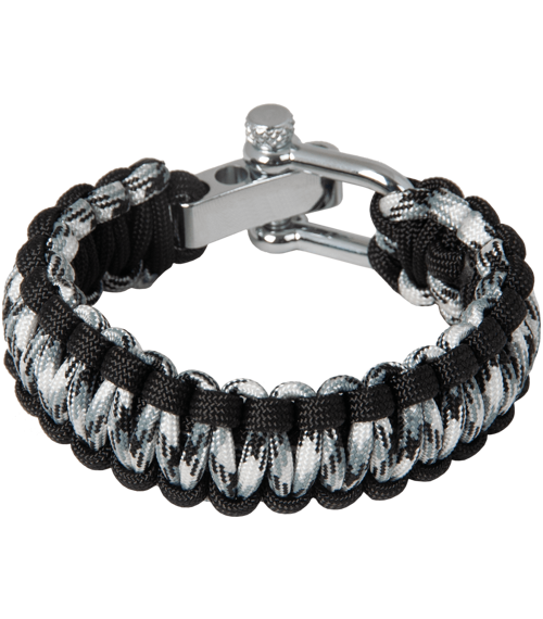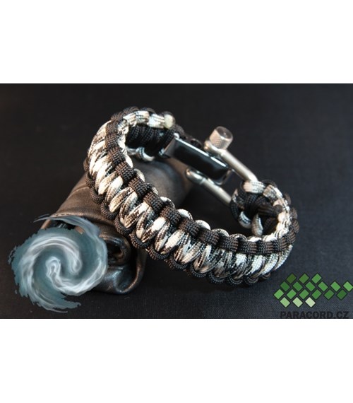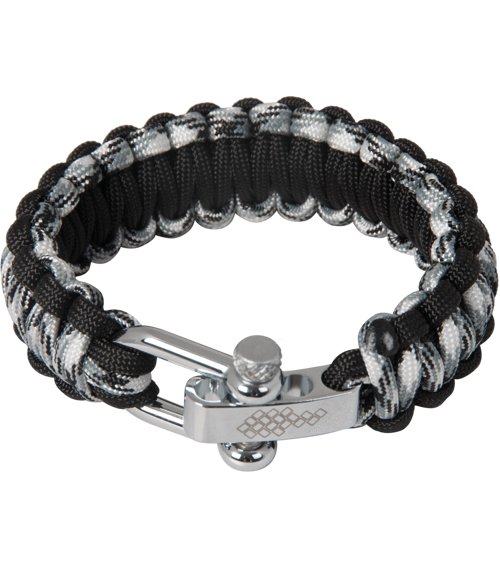 Pevný náramek upletený ze dvou padákových šňůr o průměru 4 mm a nosnosti až 250 kg. Elegantní doplněk, který v případě nouze můžete rozplést a pevnou šňůru použít třeba při stavbě přístřešku, jako náhradu tkaniček nebo šňůru na sušení prádla. Využití najdete spoustu, jak v přírodě, tak ve městě. Délka náramku je nastavitelná díky zapínání kovovou sponou s kolíkem - tři polohy.