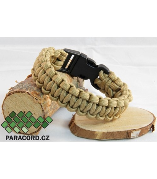 Pevný náramek upletený z padákové šňůry o průměru 4 mm a nosnosti až 250 kg. Elegantní doplněk, který v případě nouze můžete rozplést a pevnou šňůru použít třeba při stavbě přístřešku, jako náhradu tkaniček nebo šňůru na sušení prádla. Využití najdete spoustu, jak v přírodě, tak ve městě.