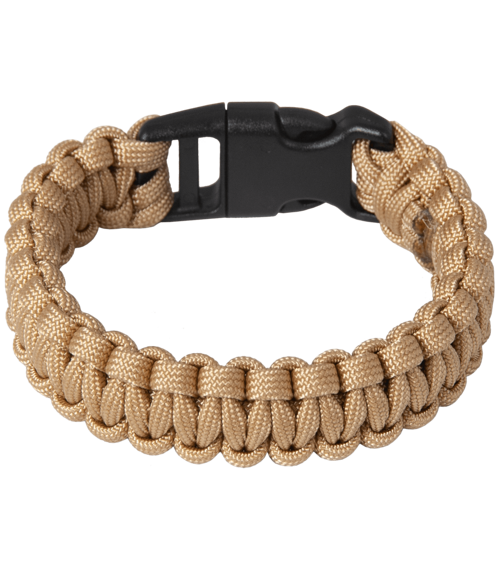 Pevný náramek upletený z padákové šňůry o průměru 4 mm a nosnosti až 250 kg. Elegantní doplněk, který v případě nouze můžete rozplést a pevnou šňůru použít třeba při stavbě přístřešku, jako náhradu tkaniček nebo šňůru na sušení prádla. Využití najdete spoustu, jak v přírodě, tak ve městě.