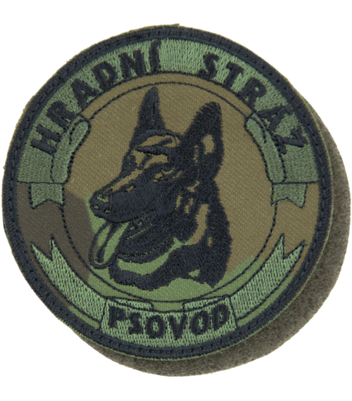• Kulatá nášivka s jemně vyšitou hlavou německého ovčáka uprostřed