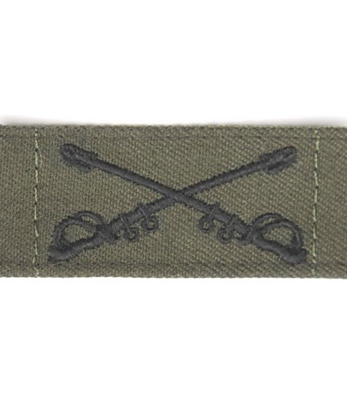 • Horní a dolní přesahy (cca 9 mm na každé straně) jsou přehnuty dospod a zašity, takže výsledná šířka nášivky je zhruba 25 mm