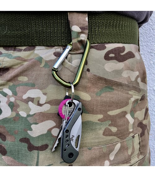 Pomocí integrované karabiny lze nůž snadno a rychle připnout ke svazku klíčů nebo na poutko kalhot. Nástroj je tak vždy pohotově po ruce pro každodenní drobné řezací práce. Nůž lze rovněž stejným způsobem uchytit k výstroji a předejít možnosti jeho ztráty např. při cestování.