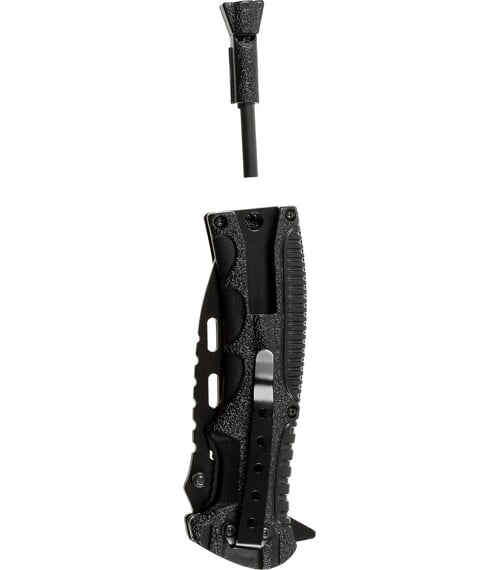 - rukojeť omotaná paracordem (barva černá nebo kamufláž), který je použitelný i pro taktické účely samostatně. Aby se padáková šňůra nerozplétala, je konec omotání rukojeti fixován trochou lepidla, tento spoj lze v případě nouzového použití roztrhnout a šňůru použít samostatně.