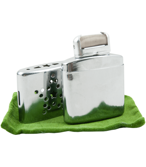 • Po zapálení zápalkou nebo zapalovačem se hlavička hořáku pouze rozžhaví (nedochází k hoření!). Žhnutím hlavičky se rozehřívá kovový plášť ohřívače. Přes ten lze převléknout ochranný váček, jenž je součástí dodávky, a zahřát např. zkřehlé ruce