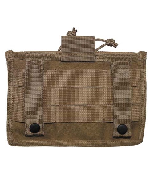 • Celé pouzdro lze pomocí klasického MOLLE uchycení se dvěma popruhy s druky umístit na opasek, taktickou vestu, tlumok nebo jinou výstrojní součástku s našitými popruhy.