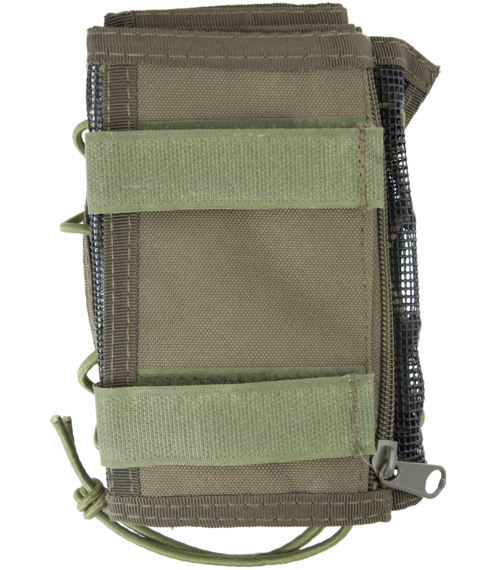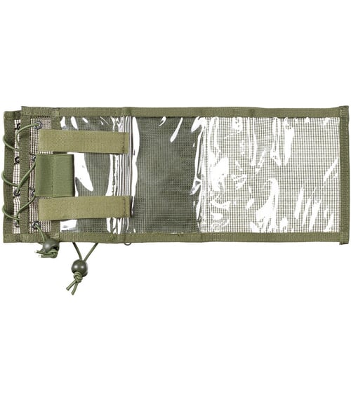 • Samotný obal na mapu je ve složeném stavu zajištěn dvěma pásky na suchý zip. Rozložený má tvar obdélníku (15 x 33 cm), z jedné strany průhledná slída, z druhé pevná síťovina