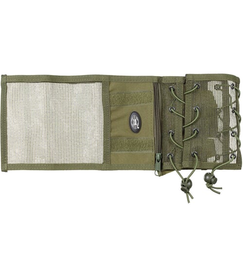 • Velikost průvleku lze přizpůsobit a zafixovat na paži pomocí pruženky s brzdičkou na obou stranách. Střední část obou spojených částí průvleku je tvořena pevnou síťovinou, umožňující cirkulaci vzduchu