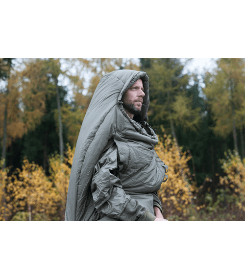 Otevřením zipu v dolní části spacáku a připevněním tohoto konce pomocí popruhů lze ze spacáku vysunout nohy a pohybovat se jako v kabátu. Rukávy jsou ukryty mezi izolačními vrstvami - nejsou zateplené. Alternativně mohou být tyto prostory využity jako úložné prostory např. pro čelovku, powerbanku atp.