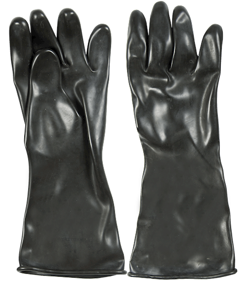 Zánovní černé gumové rukavice dodávané pod označením "švédské". Nicméně značení v balení HMAK by odpovídalo spíše dánskému značení, kde tato značka slouží pro označení vojenského materiálu (Harens Materielkommando).
