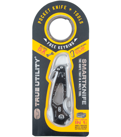 Smart Knife je sice malý, ale jak už jeho pojmenování napovídá, je to rovněž "chytrý" nůž. Nejen že se vejde do kterékoliv kapsy a svou nízkou hmotností ji nijak nezatíží, ale může být uchycen pomocí integorvaného ocelového klipu například na opasek nebo okraj kapsy. Lze jej otevírat jednou rukou a jeho čtyřcentimetrová čepel zvládne i náročnější práce. Nůž je doplněn břitem pro řezání šňůr, vlasců a tenších popruhů a na jeho konci rukojeti se nachází otevírák láhví.